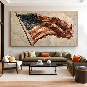 Pintura al óleo hecha a mano, lienzo, arte de pared, decoración, estrellas, rayas, bandera estadounidense para decoración del hogar, marco estirado, pintura colgante/pintura enrollada sin marco, sin