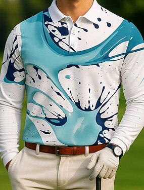 Hombre Golf Salpicadura de tinta Polo Manga Larga Camisas de polo Diseño Casual Exterior Ropa Deportiva Ropa Cotidiana Impresión 3D Botones Primavera Otoño Invierno Azul Piscina Verde Trébol