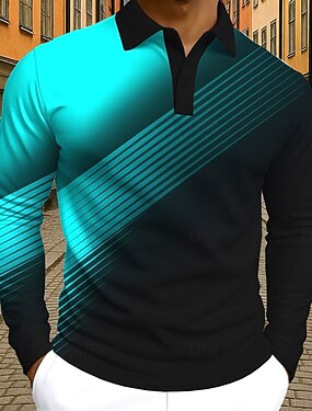 Hombre Degradado Geométrico Polo Manga Larga Camisas de polo Diseño Casual Calle Ropa Deportiva Ropa Cotidiana Impresión 3D Botones Primavera Otoño Invierno Azul cielo Amarillo Rojo