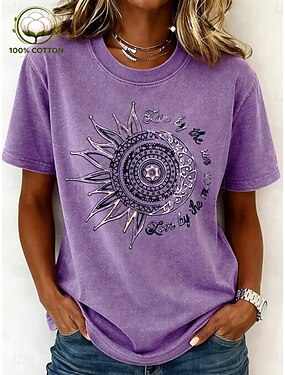 Mujer Camiseta Estampado Graphic Letra Elegante Casual Manga Corta Escote Redondo Tops regulares Diario Fin de semana Azul Piscina Negro Blanco Rosa Morado Verano Primavera GOD