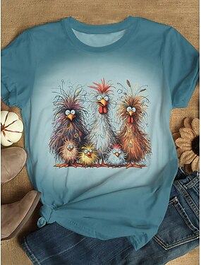 Semana Santa Mujer Camiseta Estampado Graphic Animal Caricatura Moda Elegante Clásico Manga Corta Cuello Barco Tops regulares Diario Fin de semana Azul Piscina Negro Blanco Rosa Morado Verano