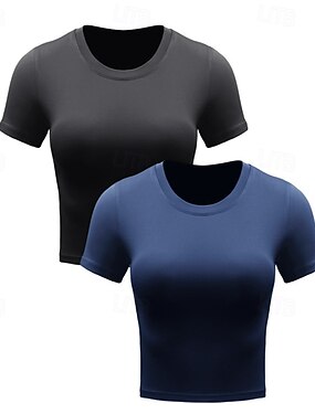 Mujer Color sólido Camiseta Running Top corto Verano Manga Corta Casual Ropa Deportiva Secado rápido Suave Transpirable Entrenamiento de gimnasio Corriendo Paseo Correr Negro Blanco Rosa Ropa de