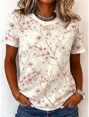 Mujer Blusa Botones Estampado Floral Graphic Vintage Tropical Elegante Manga Corta Cuello Barco Tops regulares Casual Festivos Azul Piscina Blanco Amarillo Rosa Morado Verano Primavera