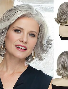 pelucas sintéticas en capas grises para mujeres blancas peluca con flequillo parte lateral en capas peluca de cabello natural ondulado gris plata mezclada para mujeres fiesta diaria peluca gris