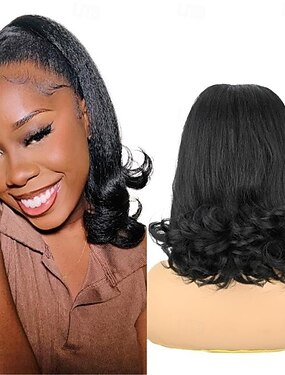 Pelucas sintéticas de 12 pulgadas para peluca de mujer pelo bobo corto y rizado negro con flequillo moda encantadora fiesta de Navidad