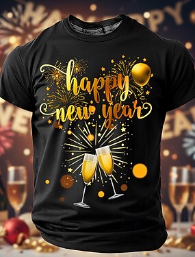 Año Nuevo Hombre Feliz año nuevo Fuegos artificiales 2026 Camiseta Manga Corta Camiseta Impresión 3D Cuello Barco Camisa Exagerado Design Artístico Discoteca Fiesta Calle Azul 1# Negro Rojo Otoño