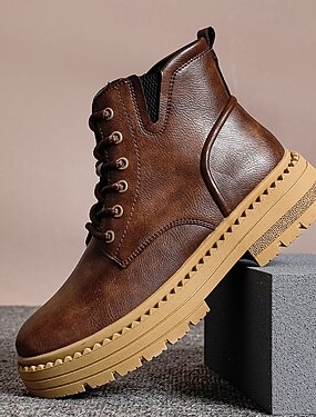 Botas con cordones de piel sintética marrón para hombre con suela gruesa: calzado elegante y práctico para salidas informales, trabajo y uso diario.