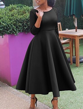 Mujer Vestido Midi Vestido de Fiesta Vestido Cóctel Vestido de Columpio Moderno Exterior Fiesta Cumpleaños Ajuste regular Plano Manga Larga Cuello Barco Negro Blanco Rojo Verde Trébol Verano