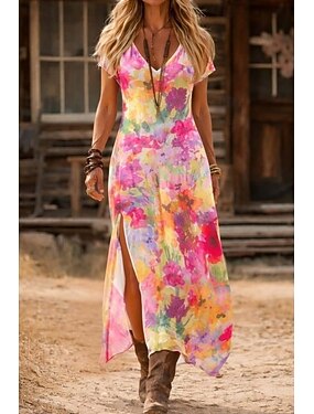 Mujer Fresco Vacaciones Vintage Estilo Étnico Longitud total Alta cintura Floral Graphic Secado rápido Transpirabilidad Suave Rígido Casual Exterior Vacaciones Rosa Rojo Verano Primavera