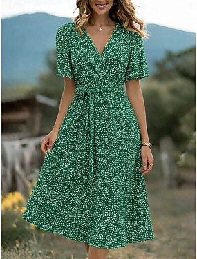 Mujer Vestido Midi Vestido de verano Vestido estilo camiseta Vestido de una línea Vacaciones Casual Festivos Ajuste regular Graphic A Lunares Manga Corta Escote en Pico Azul Piscina Rojo Verde Trébol
