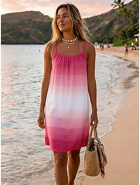 Mujer Vestido hasta la Rodilla Vestido de Tanque Casual Ajuste regular Graphic Raya Sin Mangas Cuello Barco Azul Piscina Rosa Rojo Morado Verano Primavera