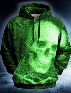 Hombre 3D Calavera Sudadera Punk Exagerado Gótico Casual Manga Larga Cuello Barco Con Capucha Discoteca Ropa de calle Rojo Azul Piscina Naranja Verde Trébol Correa Otoño Invierno Diseñador S M L XL
