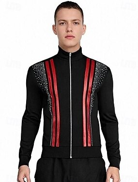 Chaqueta polar para patinaje artístico, para hombre y niño, para entrenamiento, competición, térmica, cálida, con cristales y diamantes de imitación, manga larga, para patinaje artístico.