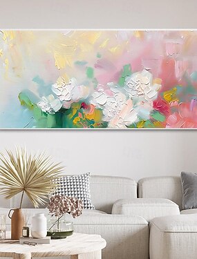 Pintura al óleo de flor rosa floreciente brumosa grande pintada a mano primavera vibrante pintura floral colorida abstracta arte de lienzo hecho a mano pintura de flores de dolor romántico