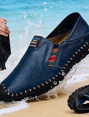 Zapatos casuales de hombre azul marino resistentes al agua, sin cordones, transpirables y cómodos, tipo mocasín de playa para viajes, vacaciones en la playa, ropa de resort, ocio al aire libre y paseos diarios en verano.