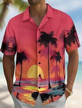 Hombre Árbol de coco Naturaleza y Paisajes Plantas tropicales camisa hawaiana Abotonar la camisa Manga Corta Hawaiano Vacaciones Ropa de playa Verano Primavera Cuello Vuelto Impresión 3D camisas con