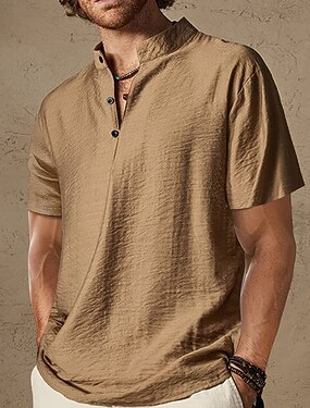 Hombre Camisa camisa de lino Camisa con cuello mao Camisa de manga corta Camisa de verano Camisa de playa Plano Vacaciones Maldición Negro Blanco Rosa Verde Trébol Manga Corta Henley Verano Ropa