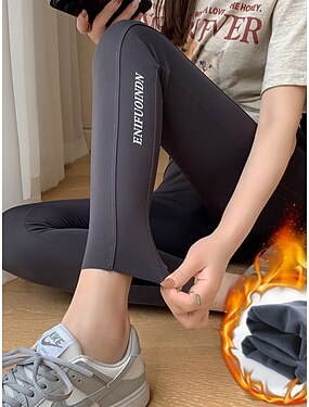 Mujer Polainas Moda Ropa de calle Casual Longitud total Alta cintura Letra Estampado Corte alto Confortable Suave Cómodo Alta elasticidad Diario Hogar Café Gris Primavera Otoño Ajustado