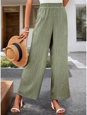 Mujer Fresco Perneras anchas Chinos Vacaciones Ropa de calle Básico Hasta el Tobillo Alta cintura Color sólido Bolsillo Cintura elástica Confortable Comodidad Cómodo Rígido Diario Exterior Vacaciones