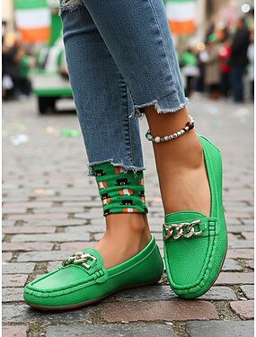 Mocasín verde para mujer, ideal para el Día de San Patricio: cómodo y sin cordones, ideal para desfiles, festivales, viajes, ropa de calle y celebraciones irlandesas. &ropa de uso diario