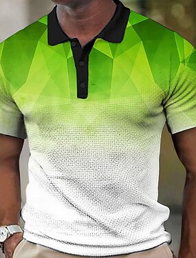 Hombre Geométrico Camisetas polo Camiseta de golf Manga Corta Camisas de polo Camisas con cuello Informal de negocios Para trabajo Ropa formal Ropa de festival Botones Impresión 3D Amarillo Gris