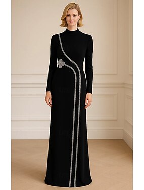 Funda Columna Hasta el Suelo Trajes de gala Vestidos de noche Corte Cenicienta Vestimenta formal Elegante Manga Larga Cuello Alto Fiesta de baile Fiesta de Noche Lentejuelas con Detalles de Cristal