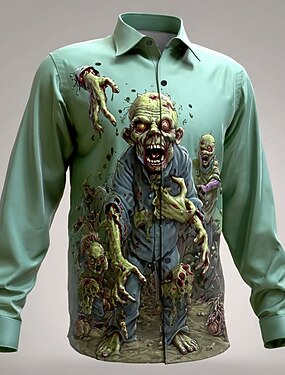 Camisa de Botón para Hombre con Disfraces de Zombies Manga Larga Estilo Punk Gótico Oscuro al Aire Libre Fiesta Verano Primavera Color Azul Púrpura Verde Caqui