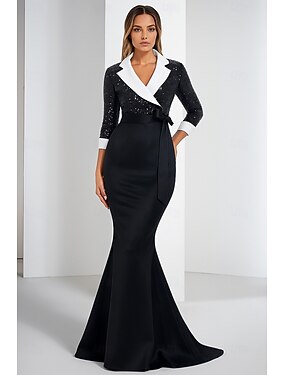 Mujer Vestido de esmoquin Corte Trompeta Sirena Sirena Boda Formal Invitado a la boda Satén Lentejuela Elegante Manga Larga Hasta el Suelo Solapas con muescas