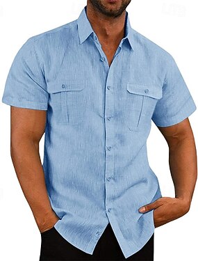 Hombre Camisa Camisa de lino Camisa de verano Camisa casual Camisa de playa Abotonar la camisa Negro Blanco Azul Marino Azul cielo Verde Ejército Manga Corta Plano Diseño Diario Vacaciones Bolsillo