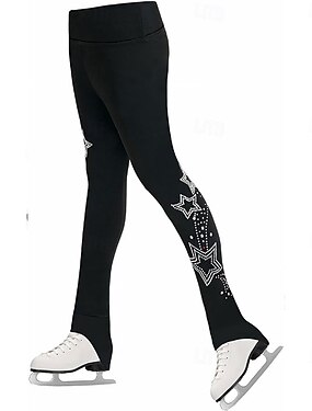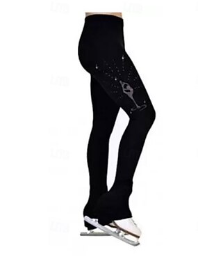 Pantalones de patinaje artístico para mujer y niña, elásticos, negros, para entrenamiento, competición, térmicos, cálidos, con cristales y diamantes de imitación, para patinaje sobre hielo.