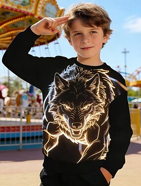 Chico 3D Graphic Lobo Sudadera Pullover Manga Larga Impresión 3D Primavera Otoño Activo Moda Ropa de calle Niños 4-12 años Cuello Barco Casual Diario Exterior Ajuste regular