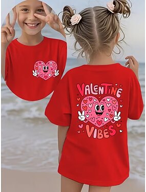 San valentin Chica 3D Corazón Graphic Camiseta Manga Corta Impresión 3D Verano Primavera Deportes Moda Ropa de calle Niños 4-12 años Cuello Barco Casual Diario Exterior Ajuste regular
