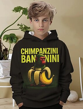Camiseta de manga larga para niño con estampado de elementos italianos de podredumbre cerebral, tung tung tung sahur, moda de primavera y otoño, ropa de calle para niños de 4 a 12 años, con capucha,