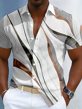 Hombre Geométrico Olas Abstracto Camisa Camisa de verano Abotonar la camisa Manga Corta Moda informal Exterior Vacaciones Uso Diario Verano Primavera Cuello Vuelto Impresión 3D camisas con cuello Un