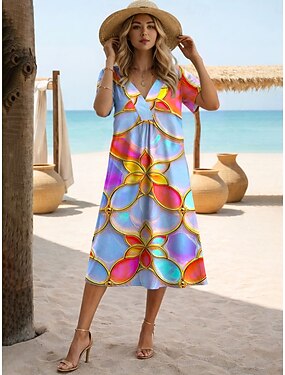 Mujer Vestido Midi Vestido de cambio Vestido de verano Vacaciones Casual Estilo playero Diario Playa Noche Ajuste regular Ombre Floral Graphic Manga Corta Escote en Pico Morado Naranja Verde Trébol
