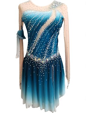 Vestido de patinaje artístico Mujer Chica Patinaje Sobre Hielo Vestidos Azul Dedo Pulgar Teñido Halo Alta elasticidad Profesional Competición Ropa de Patinaje Mantiene abrigado Cristal / Strass Manga