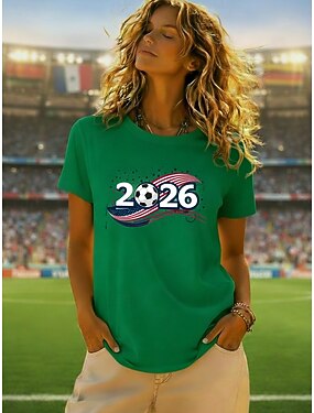 Mujer Camiseta Camiseta superior Estampado Graphic Fútbol Americano Elegante Clásico Casual Manga Corta Cuello Barco Tops regulares Diario Deportes Noche Negro Blanco Verde Trébol Gris Verano