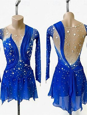 Vestido de patinaje artístico Mujer Chica Patinaje Sobre Hielo Vestidos Azul Real Dedo Pulgar Espalda Abierta Malla Alta elasticidad Entrenamiento Competición Ropa de Patinaje Clásico Cristal / Strass