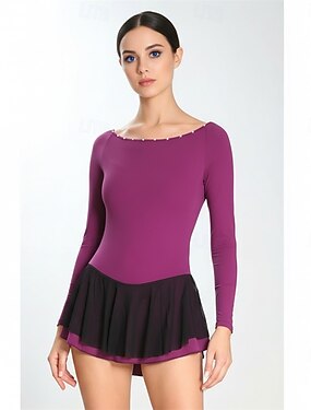 Vestido de patinaje artístico Mujer Patinaje Sobre Hielo Vestidos Morado Licra Elástico Entrenamiento Competición Ropa de Patinaje Mantiene abrigado Clásico Manga Larga Patinaje sobre hielo Patinaje