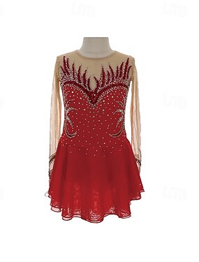 Vestido de patinaje artístico Mujer Chica Patinaje Sobre Hielo Vestidos Rojo Retazos Dedo Pulgar Malla Licra Elástico Entrenamiento Profesional Competición Ropa de Patinaje Mantiene abrigado Cristal
