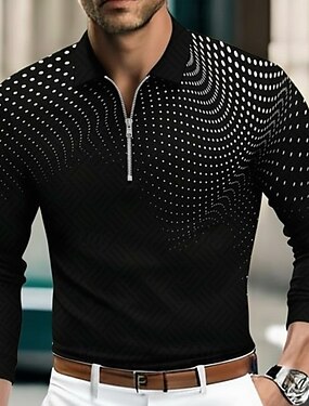 Hombre Geométrico Polo Manga Larga Cuello Vuelto Moderno Ocio Ropa Deportiva Casual Diario Cremallera Impresión 3D Primavera Otoño Invierno Negro Azul Verde Trébol