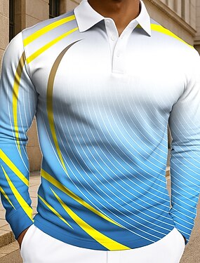 Hombre Geométrico Línea Polo Manga Larga Camisas de polo Diseño Casual Ropa Deportiva Ropa Cotidiana Impresión 3D Botones Primavera Otoño Invierno Azul Piscina Morado Verde Trébol