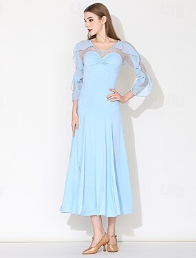 Baile de Salón Vestido Corte Mujer Rendimiento Fiesta Manga Larga Licra