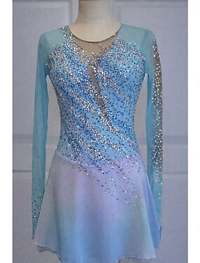 Vestido de patinaje artístico Mujer Patinaje Sobre Hielo Vestidos Azul cielo Retazos Costura asimétrica Alta elasticidad Entrenamiento Competición Ropa de Patinaje Clásico Cristal / Strass Manga Larga