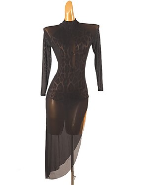 Baile salsa vestido de baile latino tul con estampado de leopardo entrenamiento de mujer manga larga tul de spandex alto