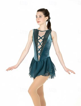 Vestido de patinaje artístico Mujer Patinaje Sobre Hielo Vestidos Verde Oscuro Retazos Costura asimétrica Alta elasticidad Entrenamiento Competición Ropa de Patinaje Clásico Cristal / Strass Sin