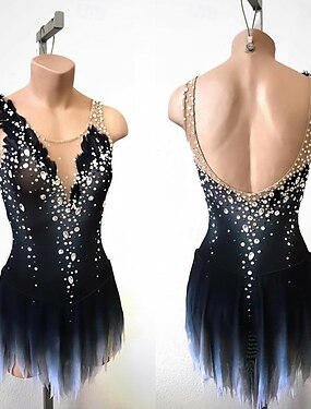Vestido de patinaje artístico Mujer Patinaje Sobre Hielo Vestidos Negro Retazos Espalda Abierta Elástico Entrenamiento Competición Ropa de Patinaje Clásico Cristal / Strass Sin Mangas Patinaje sobre