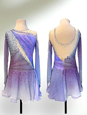 Malla de gimnasia rítmica para mujer y niña, para patinaje sobre hielo, teñido, alta elasticidad, para competición profesional, con cristales y diamantes de imitación, sin mangas.