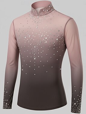Camisetas de patinaje sobre hielo para hombres y niños, de alta elasticidad, para entrenamiento, competición, patinaje, clásicas, con cristales y diamantes de imitación, de manga larga, para patinaje