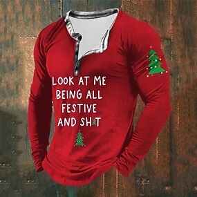 Camiseta de Mujer Henley Pullover Ombre Copo de Nieve Pullover Rojo Blanco de Manga Larga Casual Ajuste Cómodo Otoño Invierno Top Vacaciones